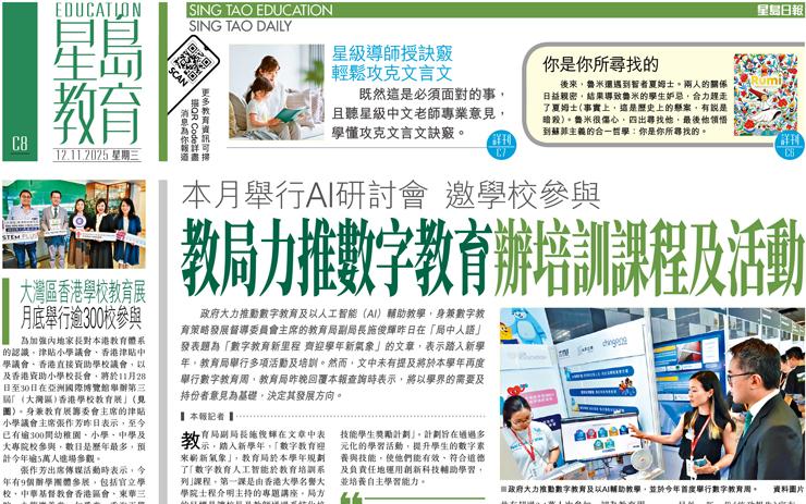 教局力推數字教育辦培訓課程及活動 本月舉行AI研討會邀學校參與