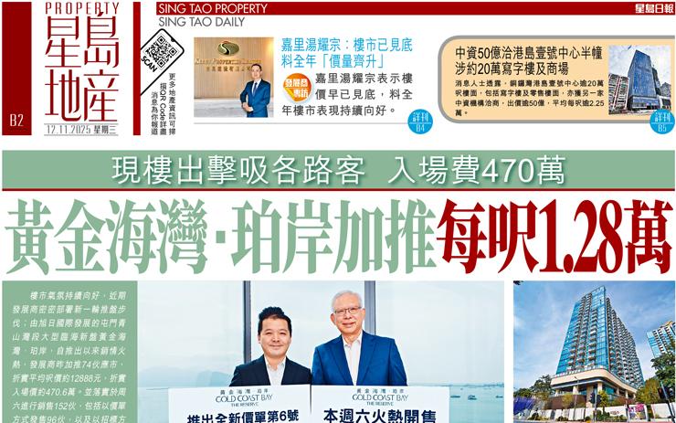 黃金海灣.珀岸加推每呎1.28萬 現樓出擊吸各路客入場費470萬