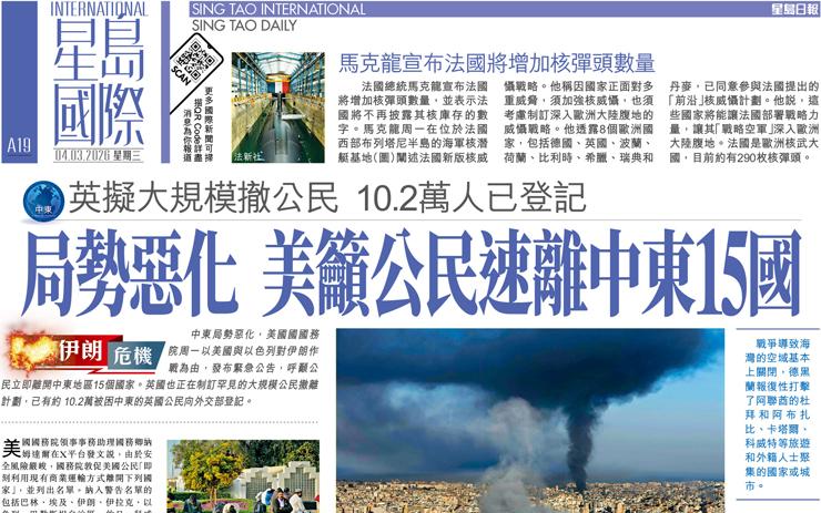 局勢惡化 美籲公民速離中東15國 英擬大規模撤公民 10.2萬人已登記