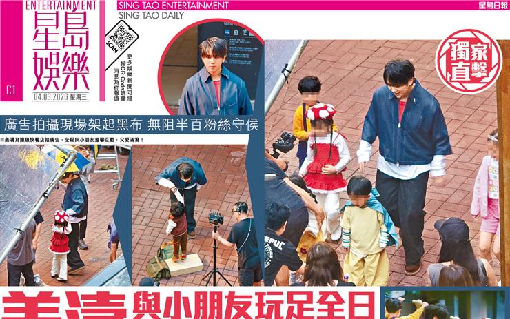 姜濤 與小朋友玩足全日 父愛大爆發 廣告拍攝現場架起黑布 無阻半百粉絲守侯