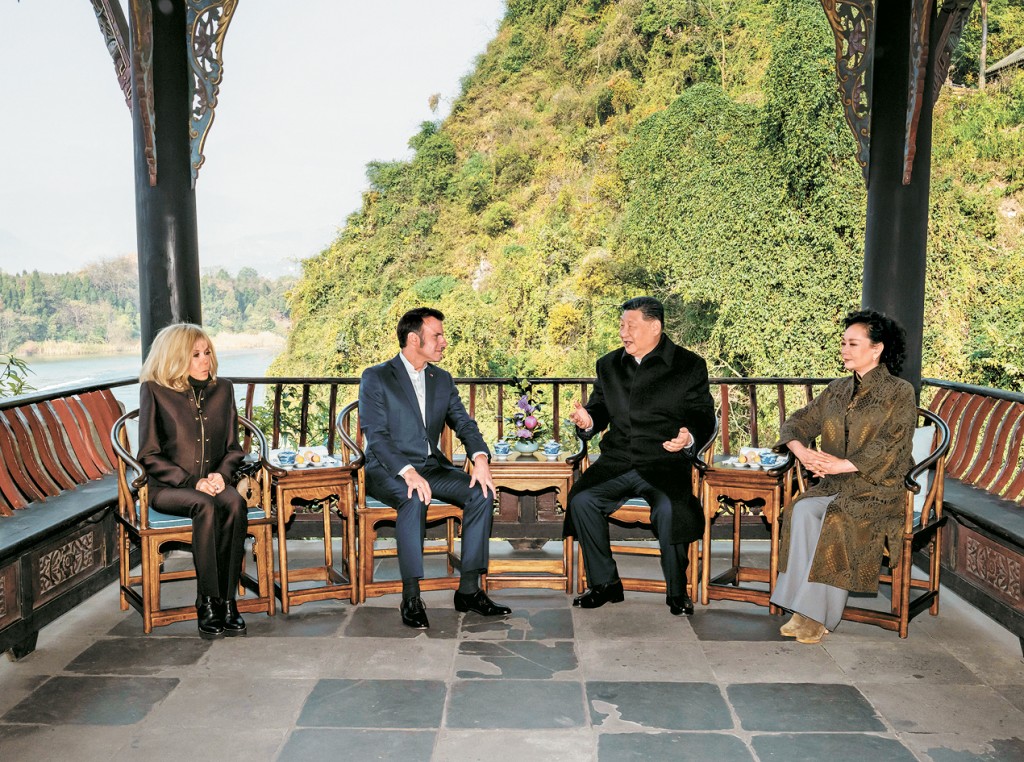 訪華的法國總統馬克龍昨日在國家主席習近平陪同下參觀都江堰,並到四川大學與學生交流,馬克龍夫人布麗吉特則參觀成都大熊貓繁育研究基地。中法確認新一對大熊...