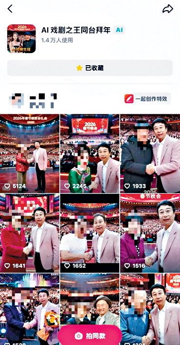 內地小品演員和港星劉德華在網友家中圍在一起包餃子;「球星姆巴佩」身着中式服裝拜年;《哈利·波特》中的人物瑪律福一家慶祝春節;還有網民「穿越」上了春晚...