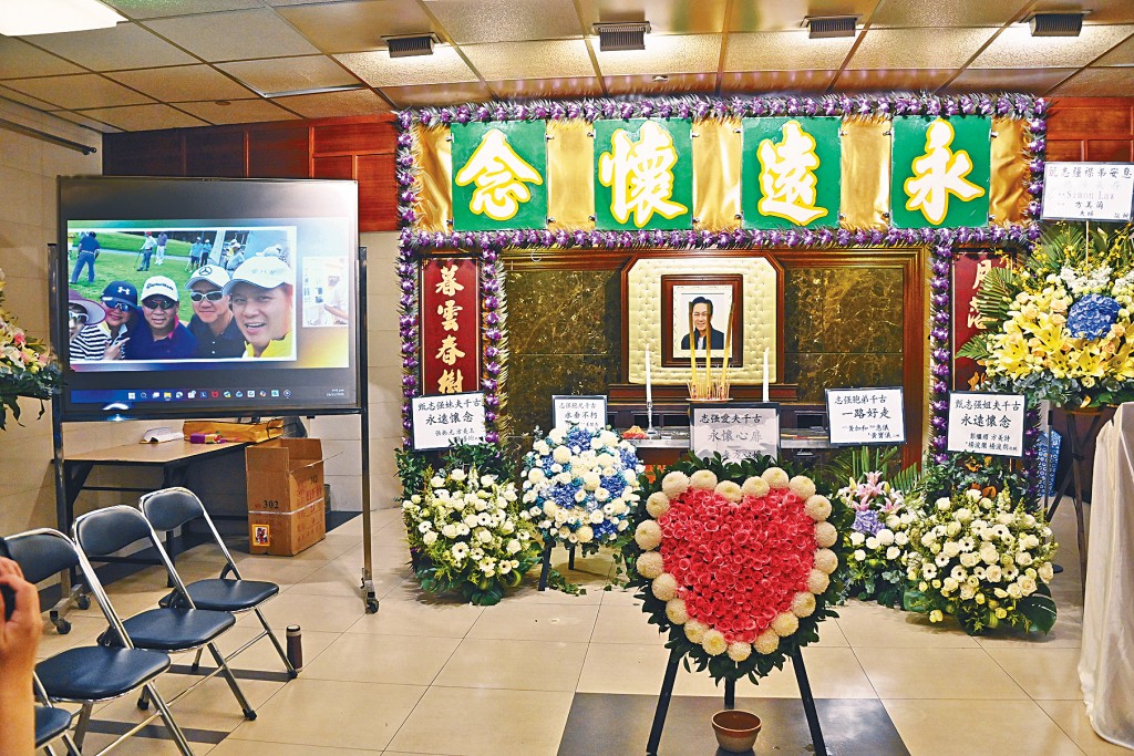 前「亞視小生」甄志強早前於內地離世,終年59歲,昨日在世界殯儀館舉行追思會。靈堂以簡潔為主,橫匾寫上「永遠懷念」,靈堂前中央擺放了遺孀方心媛的心形花...